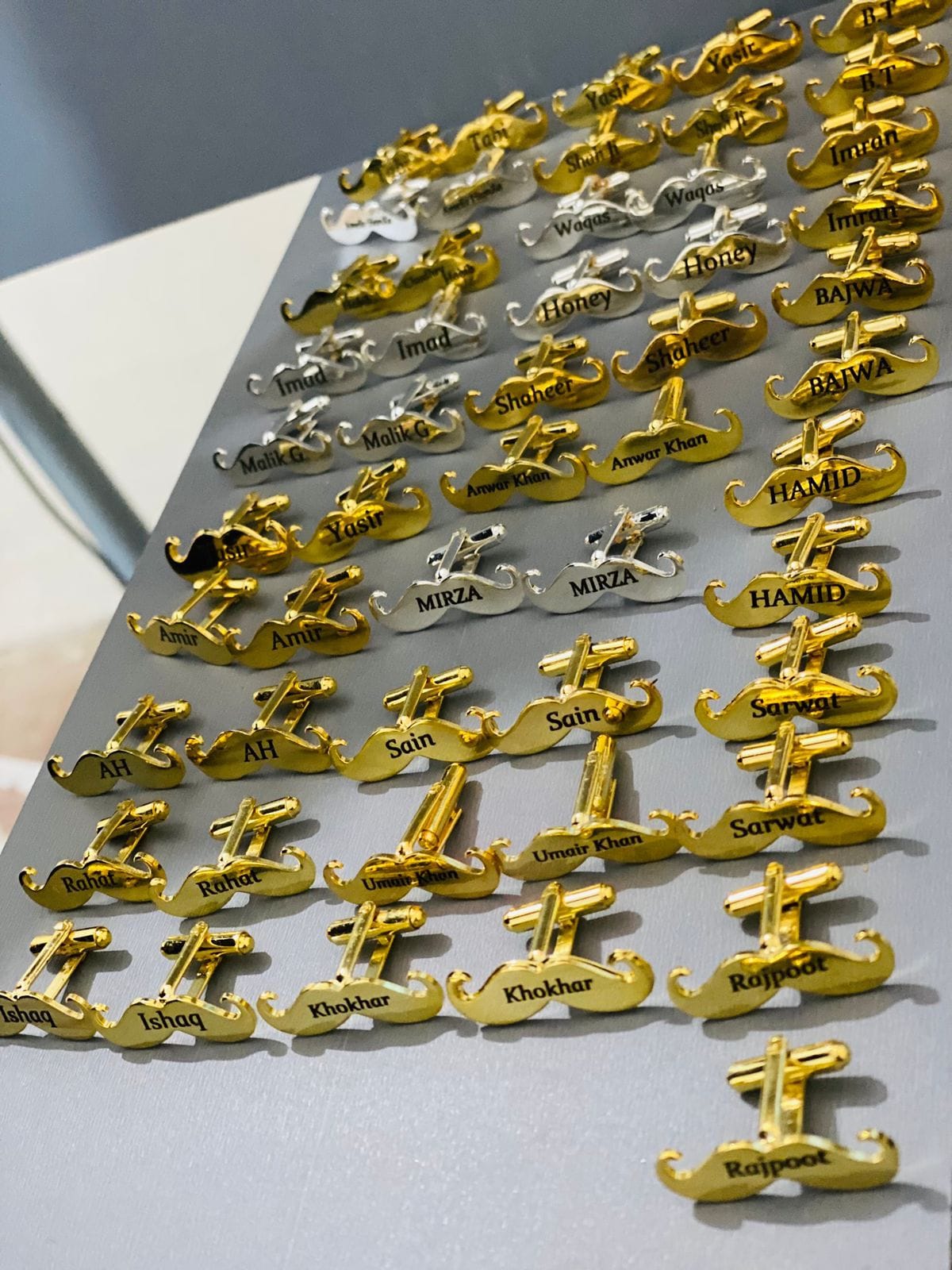 Mustache Name Engraved Cufflinks / Gold & Silver Color